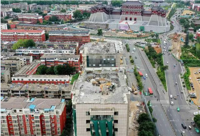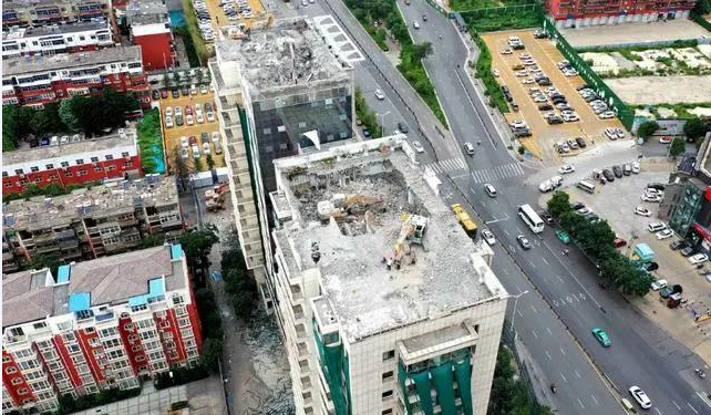 有網友指出:“無聲爆破這么先進,為啥還用這種老舊方式拆除呢?“小編覺得可能是因為該棟寫字樓距離隋唐洛陽城國家遺址公園應天門博物館幾百米,地方政府考慮到安全問題,所以才不爆破吧。