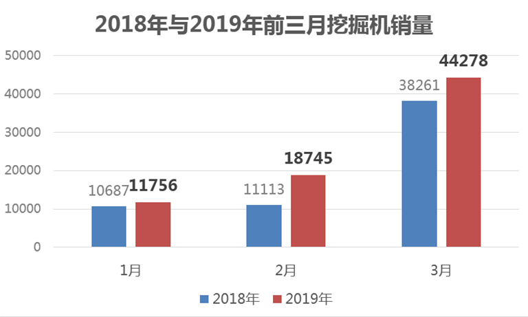 2019年3月挖掘機實現銷售44278臺,同比增長15.7%