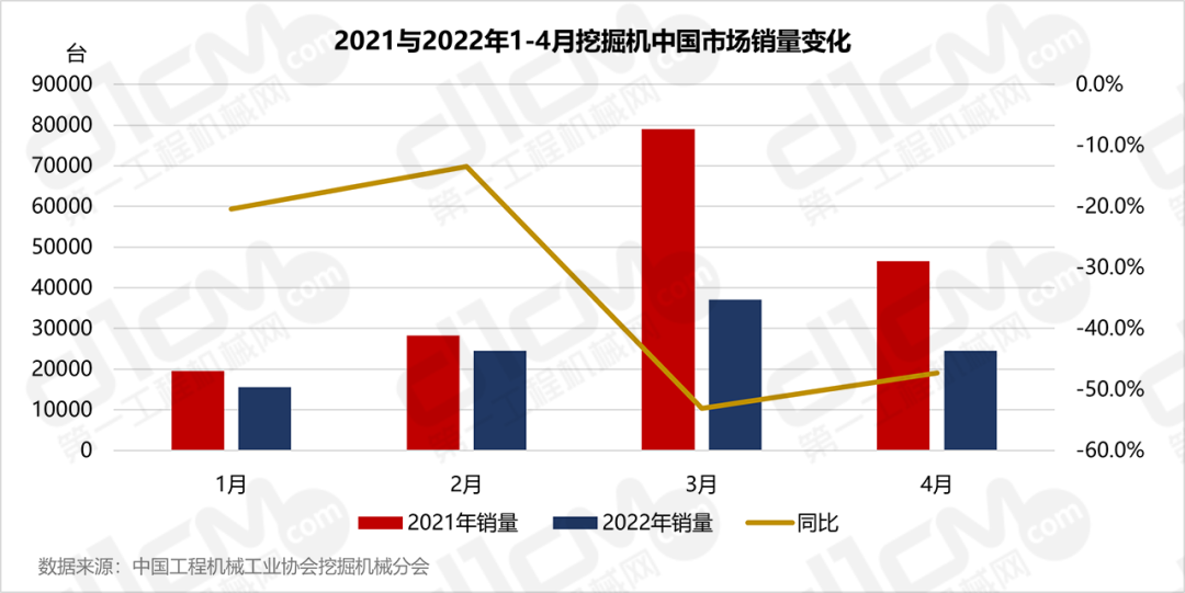 4月挖掘機銷量降幅收窄,環比迎來2022年首降